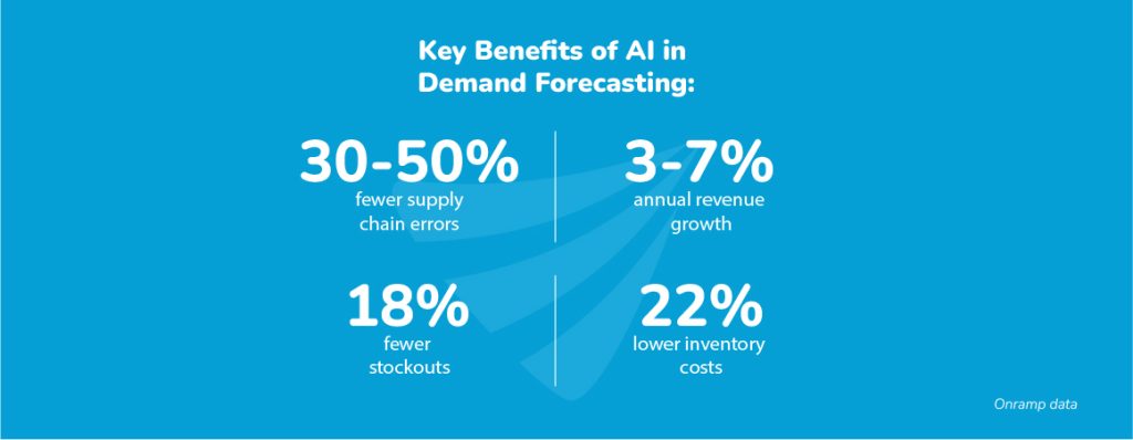 Demand volatility, especially in industries with seasonal or project-based ordering, can lead to stock-outs or excess inventory. AI-driven forecasting analyzes historical trends and real-time signals to predict demand accurately.